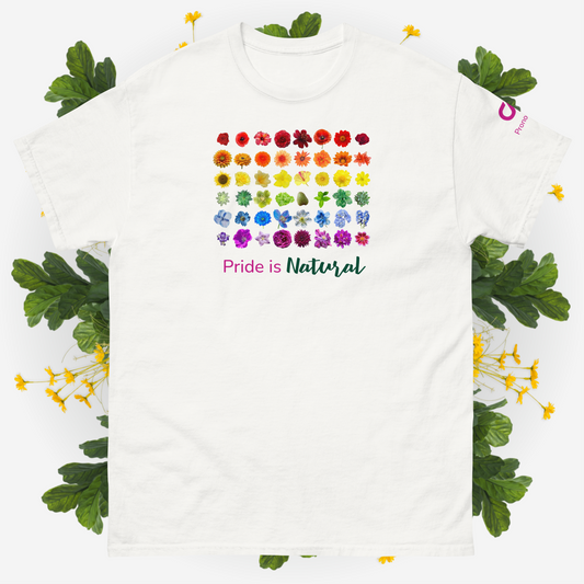 Natural Pride collection "Pride is NATURAL" rainbow floral pride flag tee