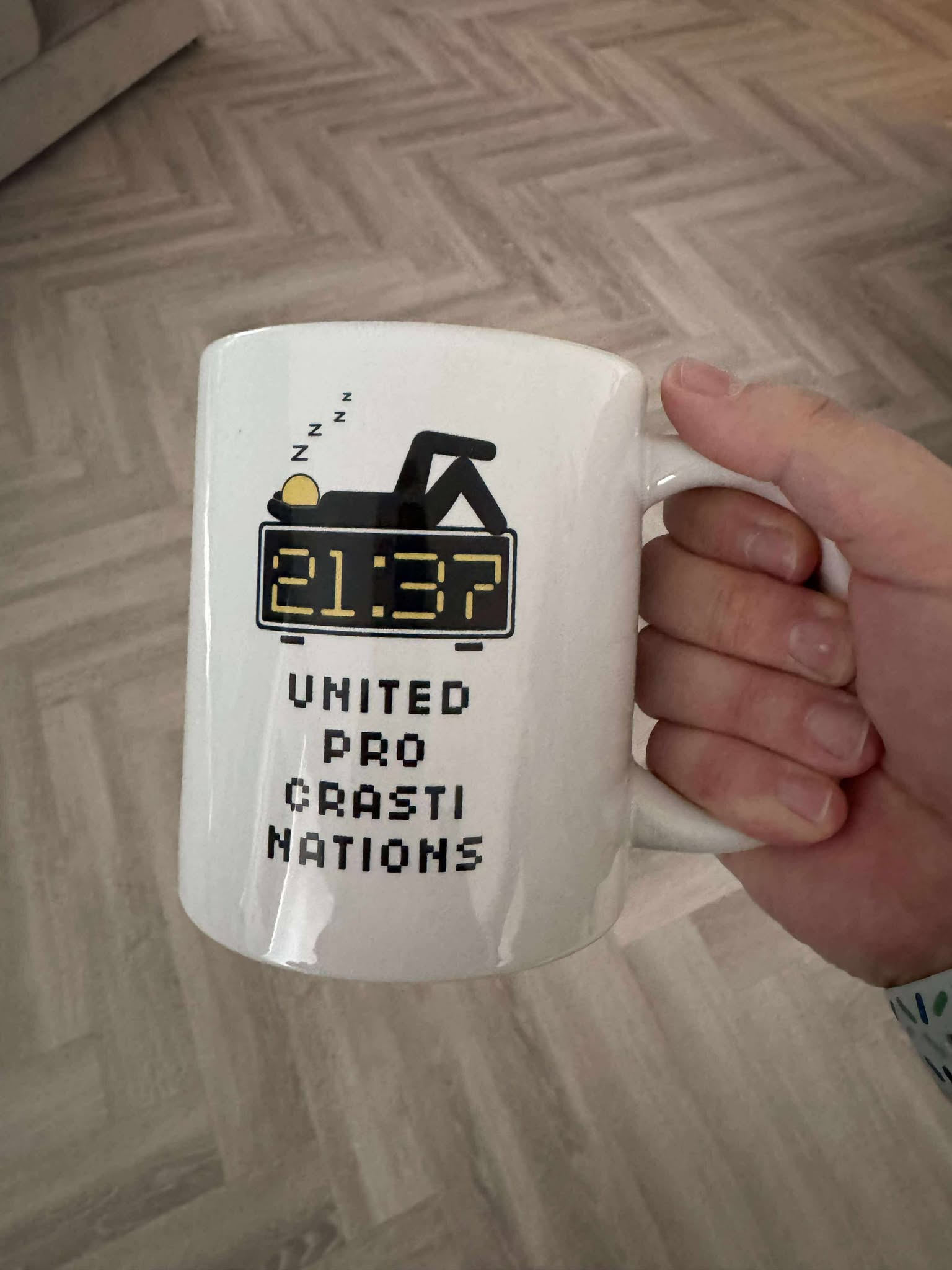 "I'll do it after coffee" – a motto printed in invisible ink.